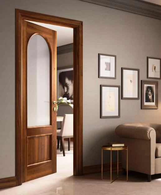 Mẫu Cửa gỗ tự nhiên – M33 có kết cấu pano kính mái vòm khá ấn tượng, dường như ngôn ngữ này khá tương đồng với kiến trúc cổ, dễ dàng kết hợp với nội thất sang trọng cổ điển hoặc Tân cổ điển. Yếu tố pano kính phản chiếu ánh sáng và đem lại sự sinh động cho cánh cửa đơn thuần. Mẫu cửa này được ứng dụng nhiều làm cửa thông phòng.
